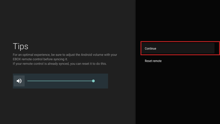 Make sure the Android system volume is at its maximum and click on “Continue”