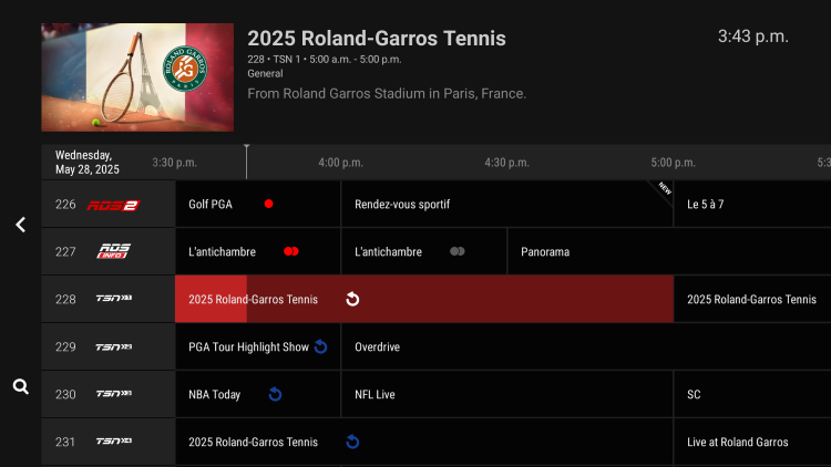 In the guide, a red dot will indicate the planned recording of a broadcast. In the case of a series, the red dot will be doubled to indicate that several recordings are planned.