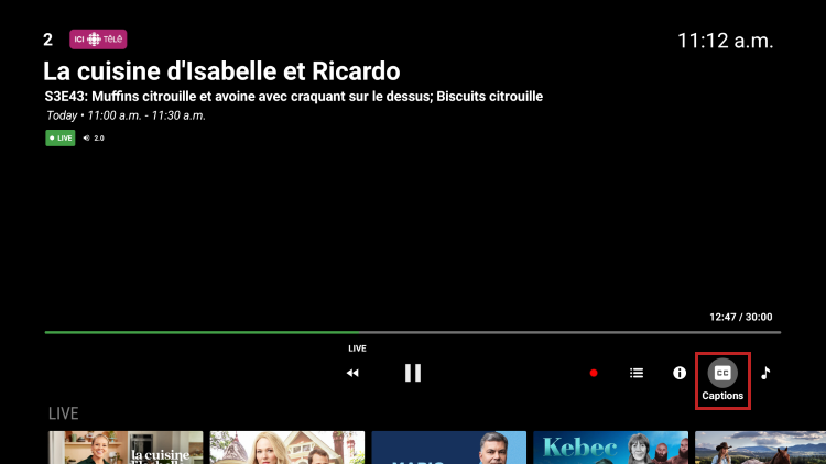 While watching a program, press “OK” or the down arrow on the remote control to open the player.