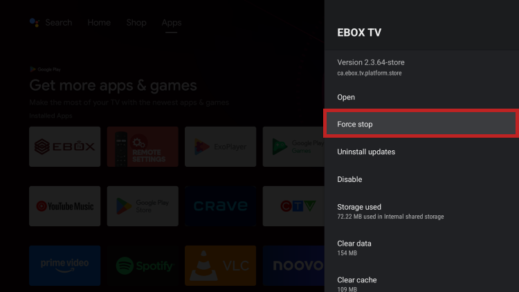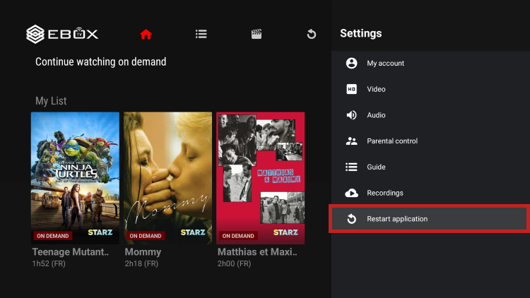 Restart the EBOX TV app