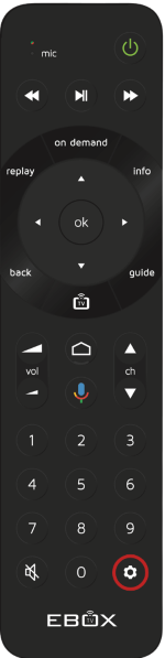 Pour effectuer une mise à jour de l’application EBOX TV, ouvre le menu paramètres en appuyant sur le bouton « Paramètres » de la télécommande.