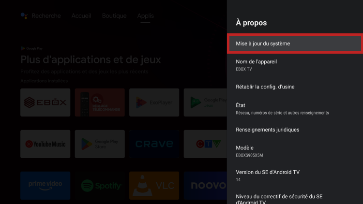 Comment faire une mise à jour système de la EBOX TV?