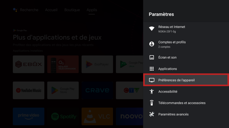 Ensuite, accède au menu « Préférences de l’appareil ».