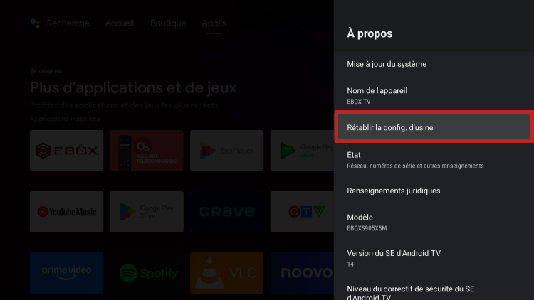 Réinitialiser la EBOX TV