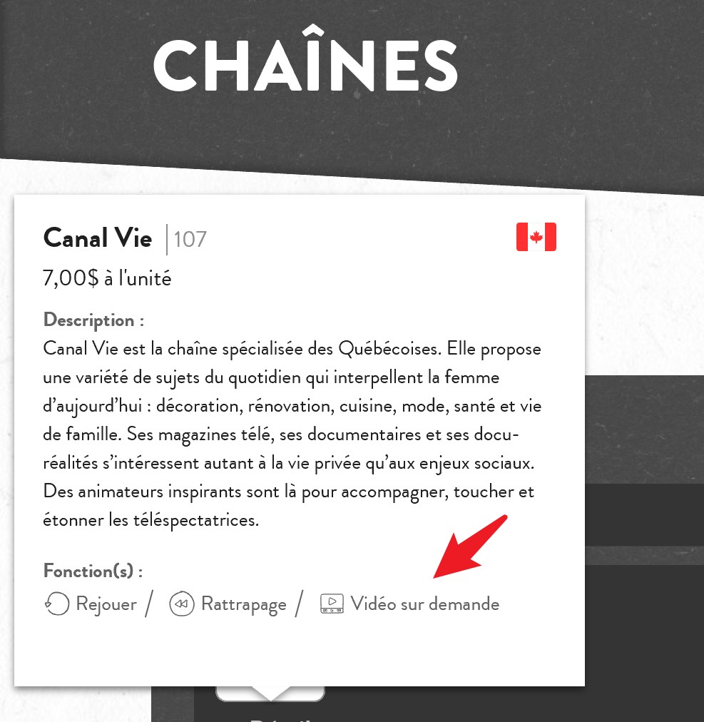 Dans la section de la description intitulée “Fonctions”, vous pourrez voir si la chaîne offre la vidéo sur demande.